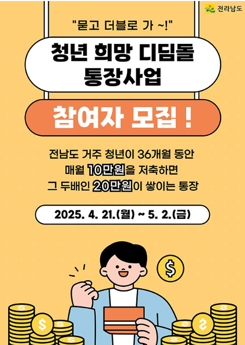 청년 자산형성의 첫걸음, 전남 청년 희망디딤돌 통장! 최대 720만원까지 지원받자💸